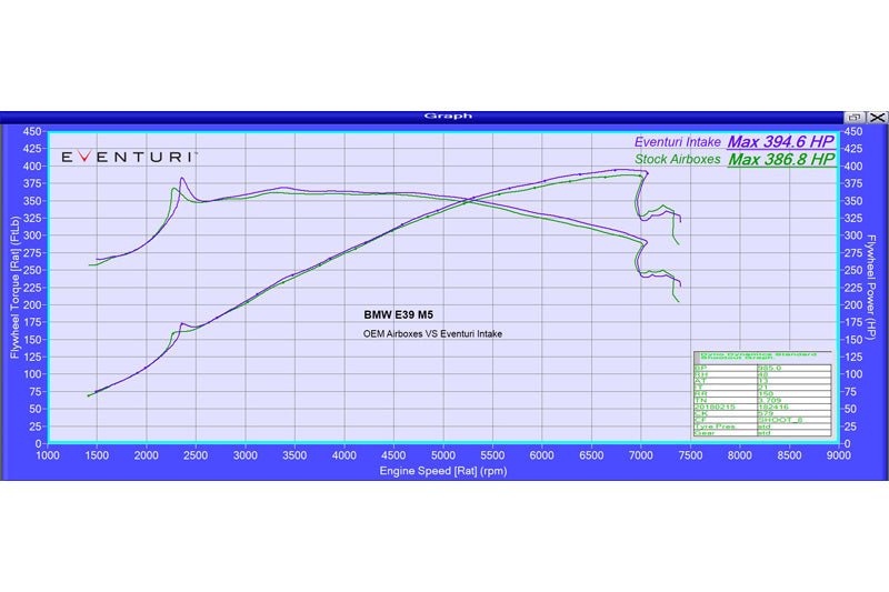 The BMW E39 M5 Eventuri intake is designed to offer a complete solution as an upgrade to the stock airbox system. Our aim was to develop an intake system for the S62 engine which worked with the stock ECU map and MAF sensors and produced a genuine improvement in the driving experience. With Our Patent Pending Venturi housing, we have ensured that the airflow remains as laminar as possible. Furthermore, the addition of a true cold air feed by adding scoops integrated with the front fog lamps results in the lowest possible inlet air temperature. This leads to an optimised intake system which delivers noticeable performance gains consistently.