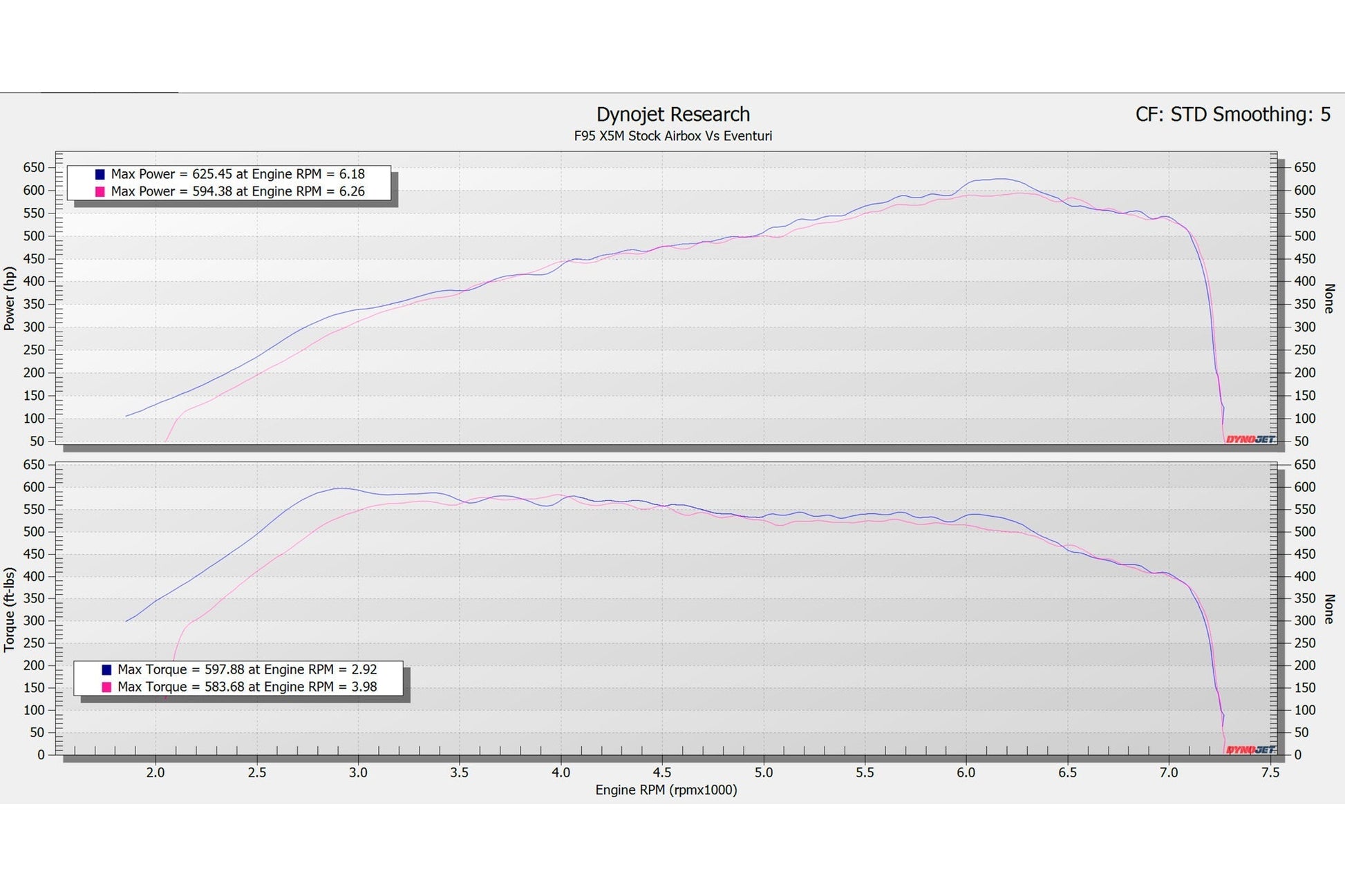 Max Flow Rates: Stock 774 CFM, Eventuri 900 CFM