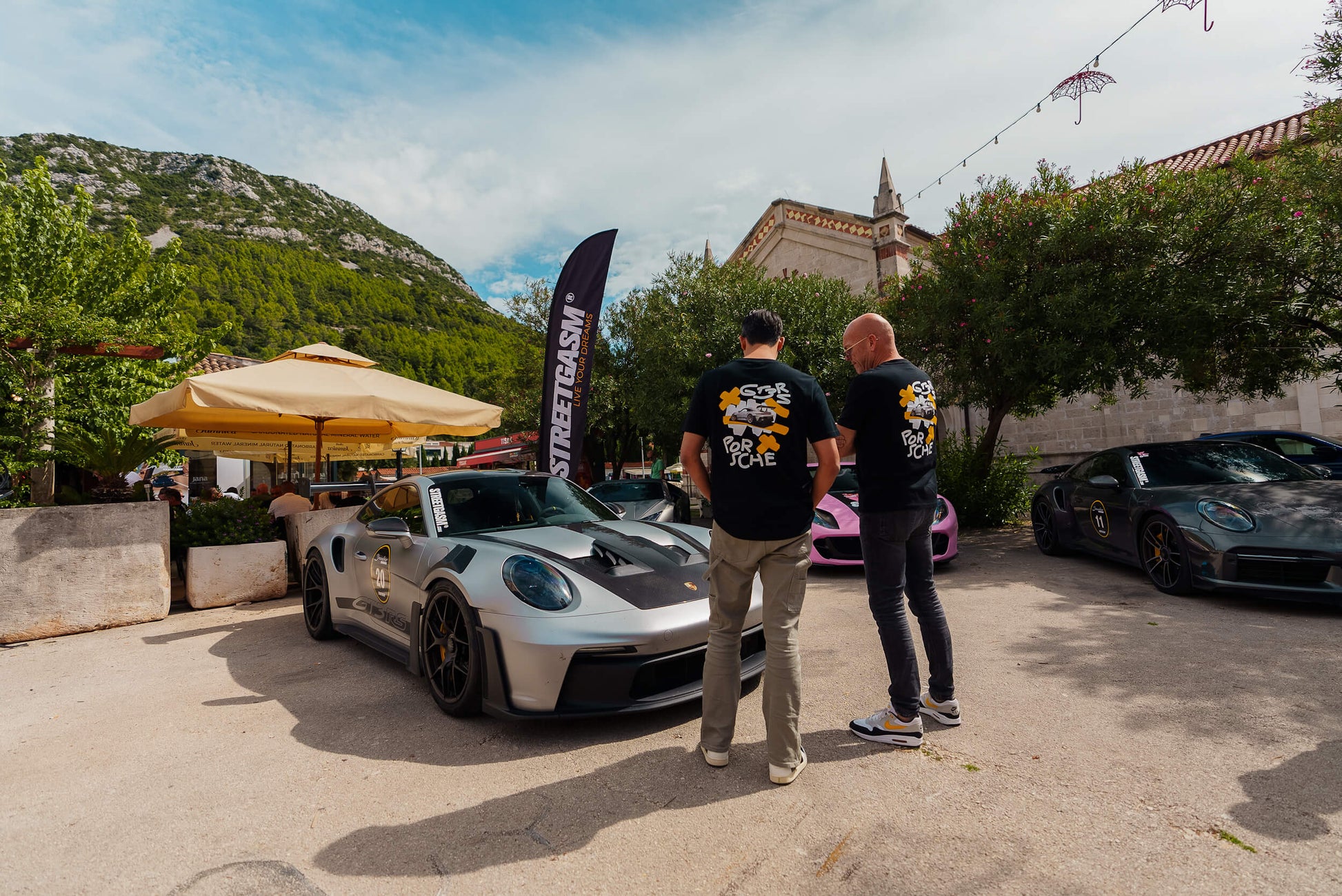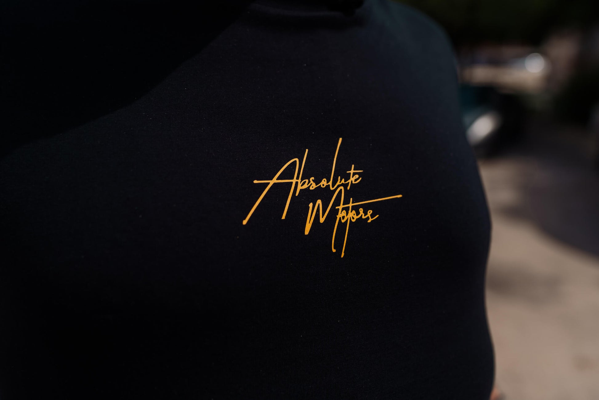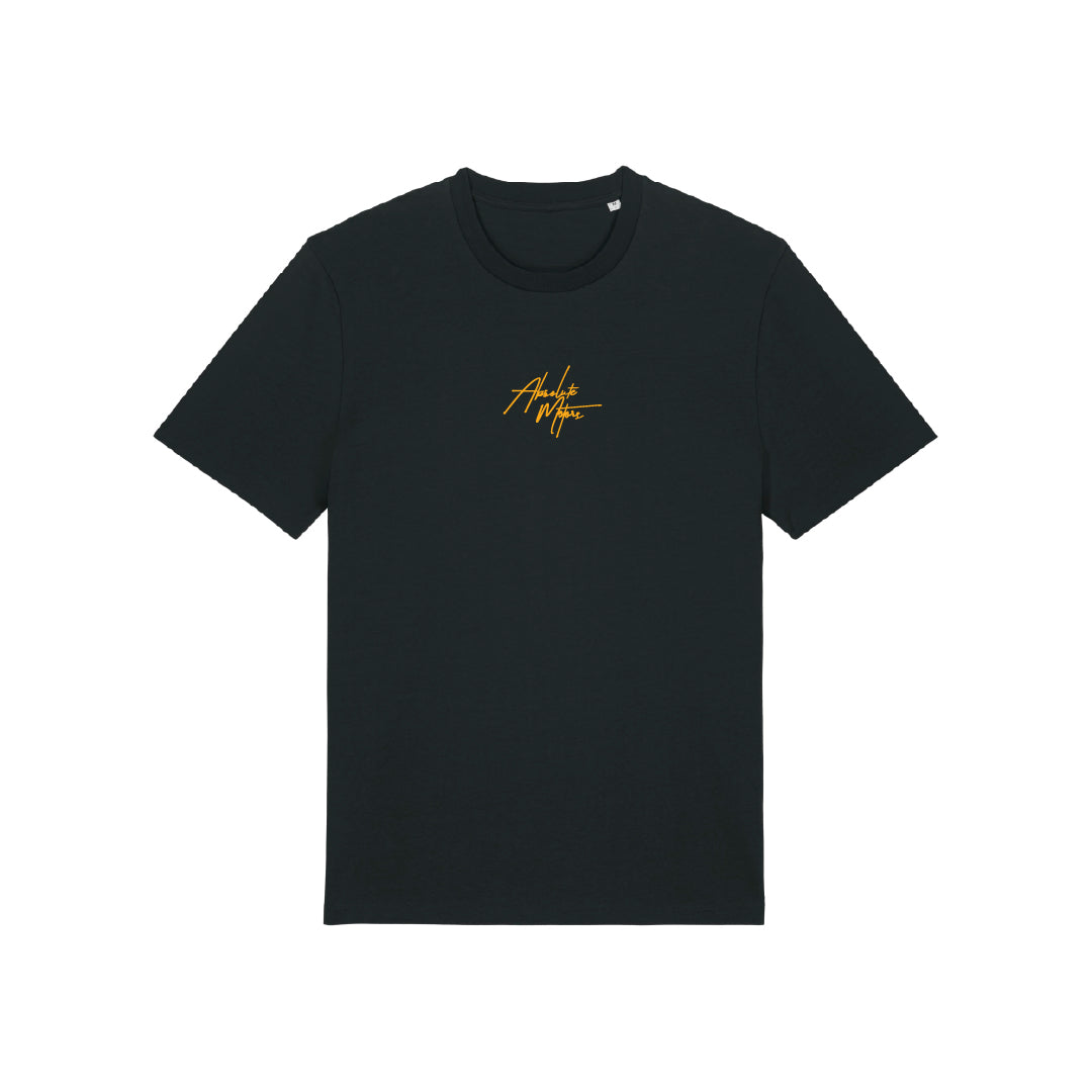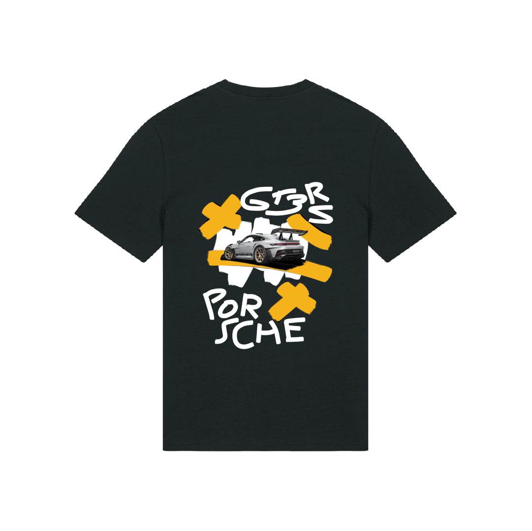 Premium Black T-shirt with Absolute Motors signature on the front and a full color print of our favourite “Absolute Motors Porsche GT3 RS“ on the back