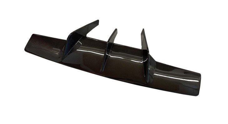 This carbon fiber diffuser, designed for the N-LARGO Coupé, enhances aerodynamic performance by managing airflow at the rear of the car. Its aggressive styling and carbon fiber finish underline the vehicle's high-performance capabilities